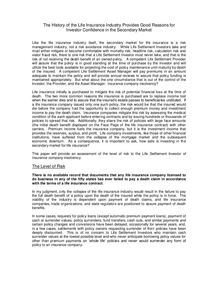 Investor Confidence In The Secondary Life Market